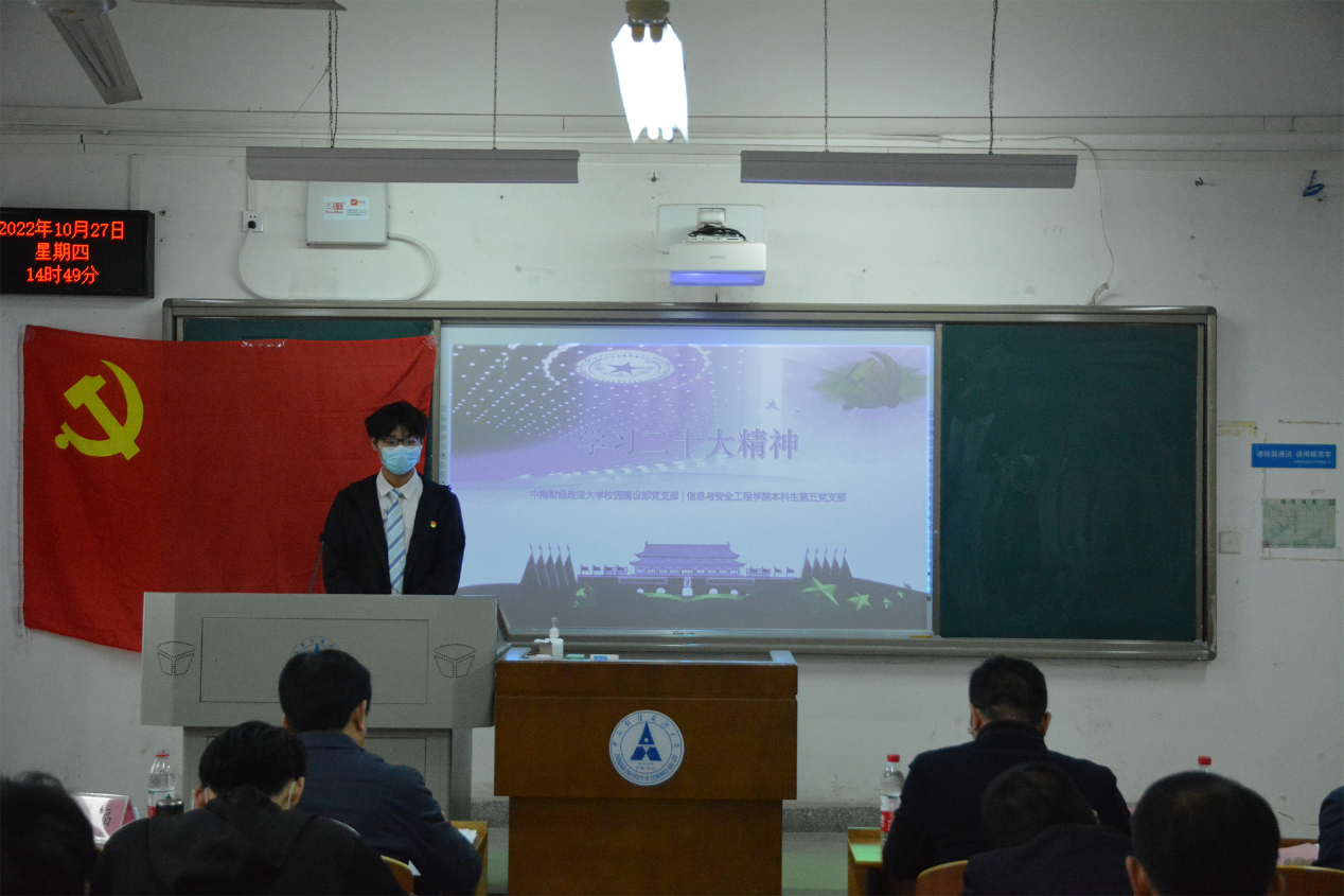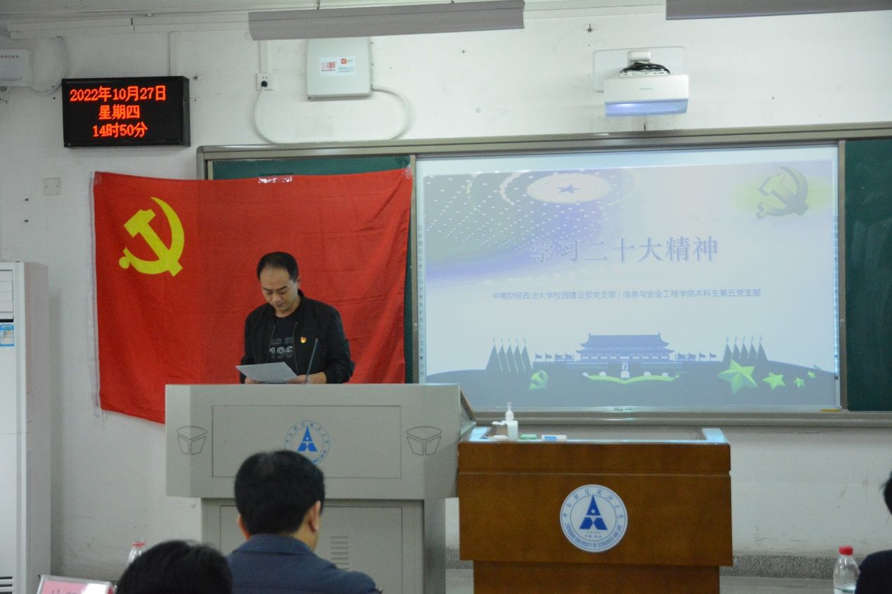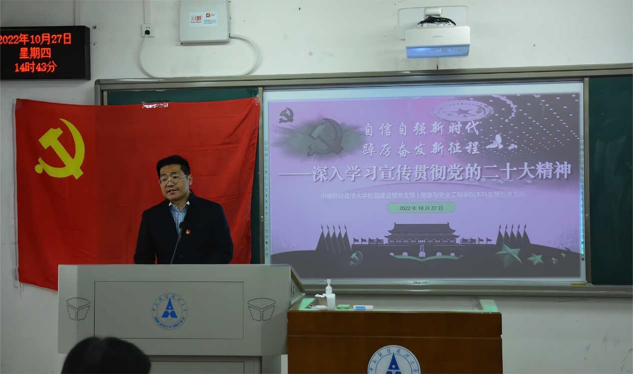 (通讯员 肖琳)10月26至27日,校园建设部党支部与信息与安全工程学院本科生第五党支部开展了以“自信自强新时代、踔励奋发新征程——深入学习宣传贯彻党的二十大精神”为主题的10月份主题党日活动。