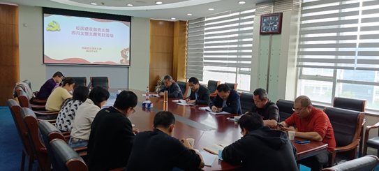 (通讯员 肖琳)为认真贯彻落实关于深入开展学习贯彻习近平新时代中国特色社会主义思想主题教育的有关要求,4月28日下午,校园建设部党支部在中原楼六楼会议室开展了第一期“读·讲·行”主题党日活动,校园建设部党支部全体党员参加此次学习活动。会议由支部书记胡海南主持。