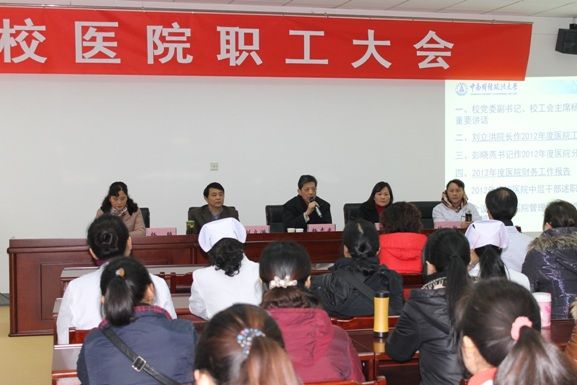 院长刘立洪在会上作了题为《创建师生满意医院 推动医院全面发展》的医院年度工作报告,报告回顾了一年来校医院的工作和取得的成绩,实事求是地分析了现实存在的不足与挑战,提出医院2013年工作思路和主要任务。直属党支部书记、副院长彭晓燕作了题为《内聚人心 外树形象 共创“和谐医院 健康中南”》的工会工作报告,报告从三个方面回顾了近两年分工会开展的活动情况,并对下年度的分工会工作提出了四个方面的设想。院办主任管成英代表院财经小组作了《校医院2012年度财务工作报告》。会议审议并一致通过了以上三个报告。