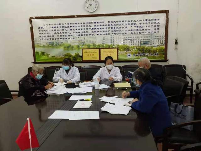 校医院工作人员在离退休工作部、丁字桥小区审核离退休人员医疗费用发票