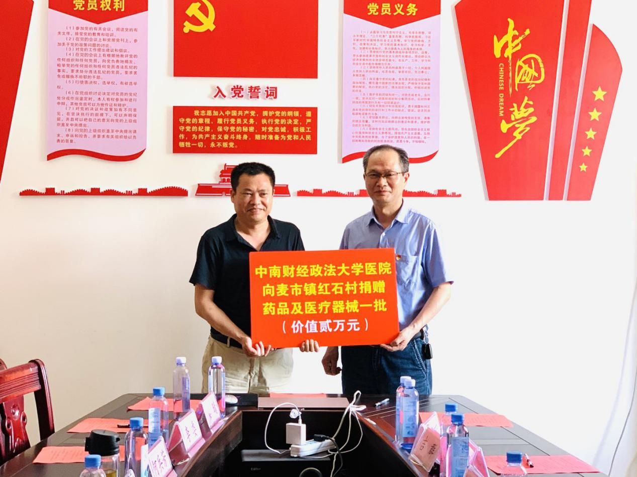 座谈会后,申祖武代表学校向红石村捐赠帮扶资金2万元,黄之勤副院长代表校医院向红石村医务室捐赠2万元的药品及医疗器械,校医院党委第三党支部与红石村党支部签署结对共建协议。