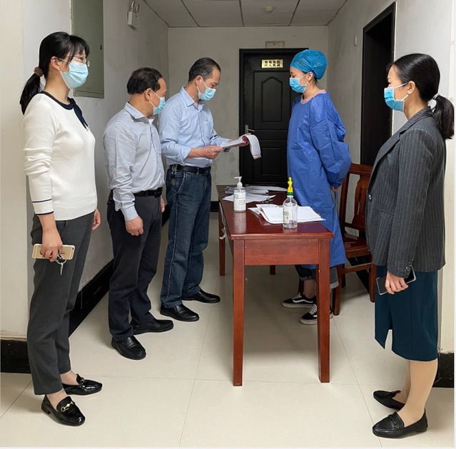 (通讯员 管成英)为进一步强化疫情常态化防控,5月19日上午,校医院院长黄之勤、党委书记李先卓、副院长刘晓玲、医务科主任管成英、护理部主任兼院感办主任杨丽等,来到学校南湖校区健康观察站督查督导疫情防控工作,看望慰问疫区返校学生。