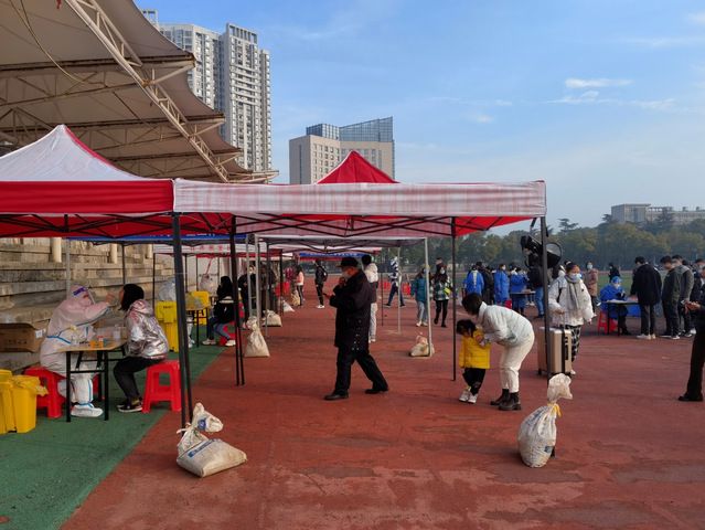 由于人员紧、时间急,为了按时完成校内数万人的核酸采样工作,医护人员加班加点,实行三班轮岗,每日进行17个小时的核酸采样,面对繁重而危险的工作,没有一个人退缩、没有一个人抱怨。