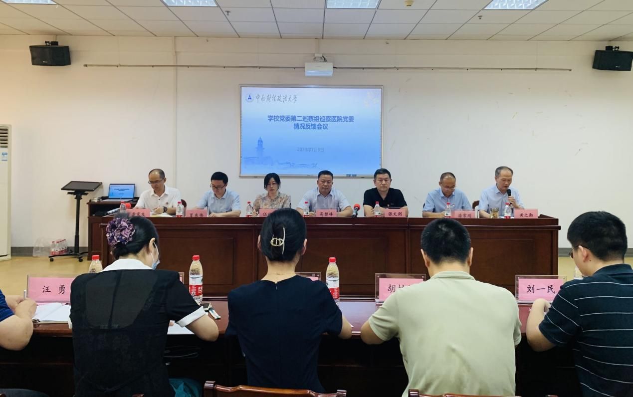 (通讯员 黄涛)7月5日下午,学校第四届委员会第六批巡察第二巡察组巡察医院党委意见反馈会议在医院506会议室召开。校党委第二巡查组组长高碧峰、副组长王瑄、胡桂锬、联络员鲁雯老师,校党委巡察办主任张文剑、副主任夏东伟、秘书刘一民老师莅会,医院党政领导班子成员、全院职工参加会议。党委组织部副部长伍施乐、监察工作部副部长潘常刚列席会议。会议由医院院长黄之勤主持。