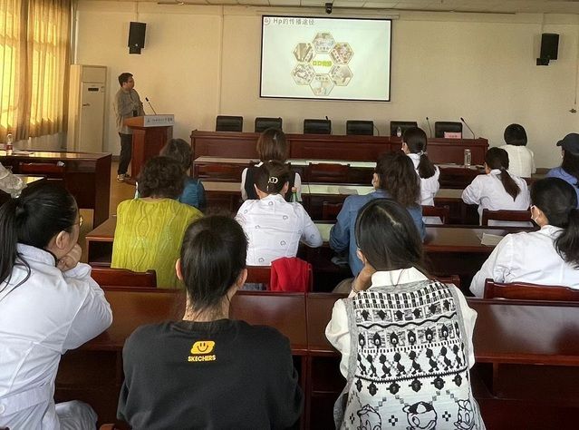 据权威机构统计,Hp全球总体感染率达44.3%,Hp感染是胃腺癌(包括近端胃癌)的首要致病因素,早期发现并根除HP可以显著降低胃癌发生风险。余世界分别从Hp感染概述、Hp感染相关疾病、Hp检测操作方法(尿素呼吸试验)、根除Hp方法、益生菌在Hp根除中的作用等五个方面进行详细的阐述,对我院即将开展的职工体检及检后干预提出了针对性指导意见,并就治疗方案及用药选择与我院医生进行了交流与探讨。