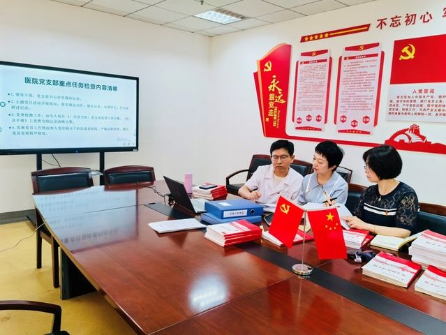 本次督导检查由党委书记龚家友主持,医药党支部、临床综合党支部、首义党支部和行政党支部的党支部书记参加。按照医院党建工作考核细则,结合2024年度党建工作要点,对4个党支部党建工作进行检查。督查坚持问题导向,采取查阅资料和座谈交流的方式,重点对党纪学习教育开展、“三会一课”制度落实、主题党日活动开展、党员发展资料整理、党费收缴、使用和管理、《党支部工作手册》《党员手册》记录等进行了全面督查,帮助各党支部找准工作中存在的短板弱项,并及时反馈问题,提出指导性改进意见。检查前,党支部书记集中观看了《党支部标准化规范化建设》系列视频。