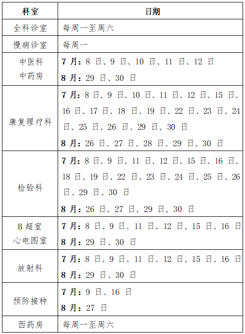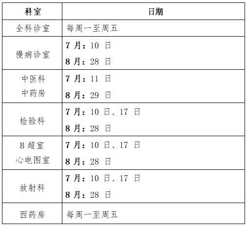 根据学校假期工作安排,现将教职工、学生假期就医时间通知如下: