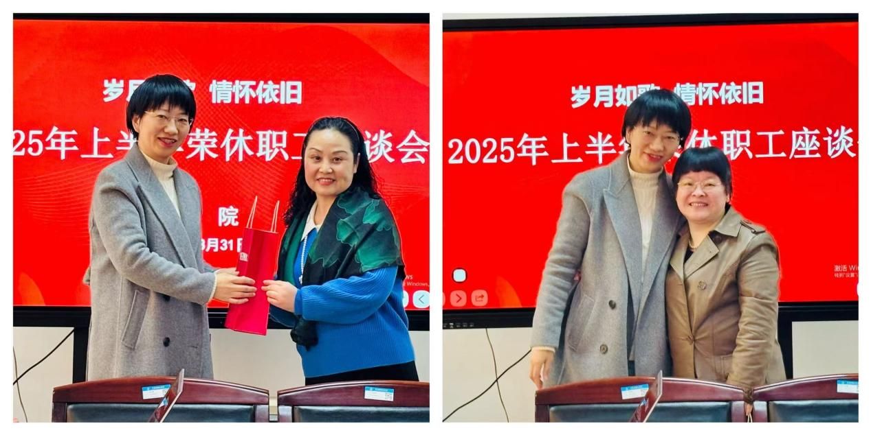 座谈会上,与会同志传阅了一张张承载着岁月记忆的老照片,深情回忆了两位荣休同志的职业生涯,肯定他们为医院发展做出的突出贡献。刘晓玲副院长送上饱含心意的荣休礼物。黄之勤院长高度赞扬他们的职业精神,送上衷心的祝福。