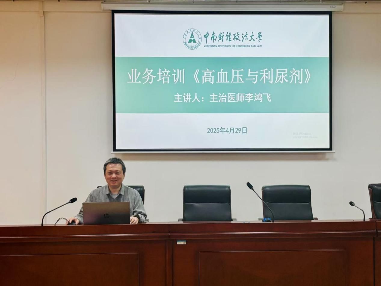 活动开场,主治医师李鸿飞以《高血压的利尿剂》为题开展业务培训。他凭借深厚的临床经验积淀,从高血压常用药物分类切入,深入剖析各类药品作用机制,并系统阐述常见副作用的预防与处置要点。