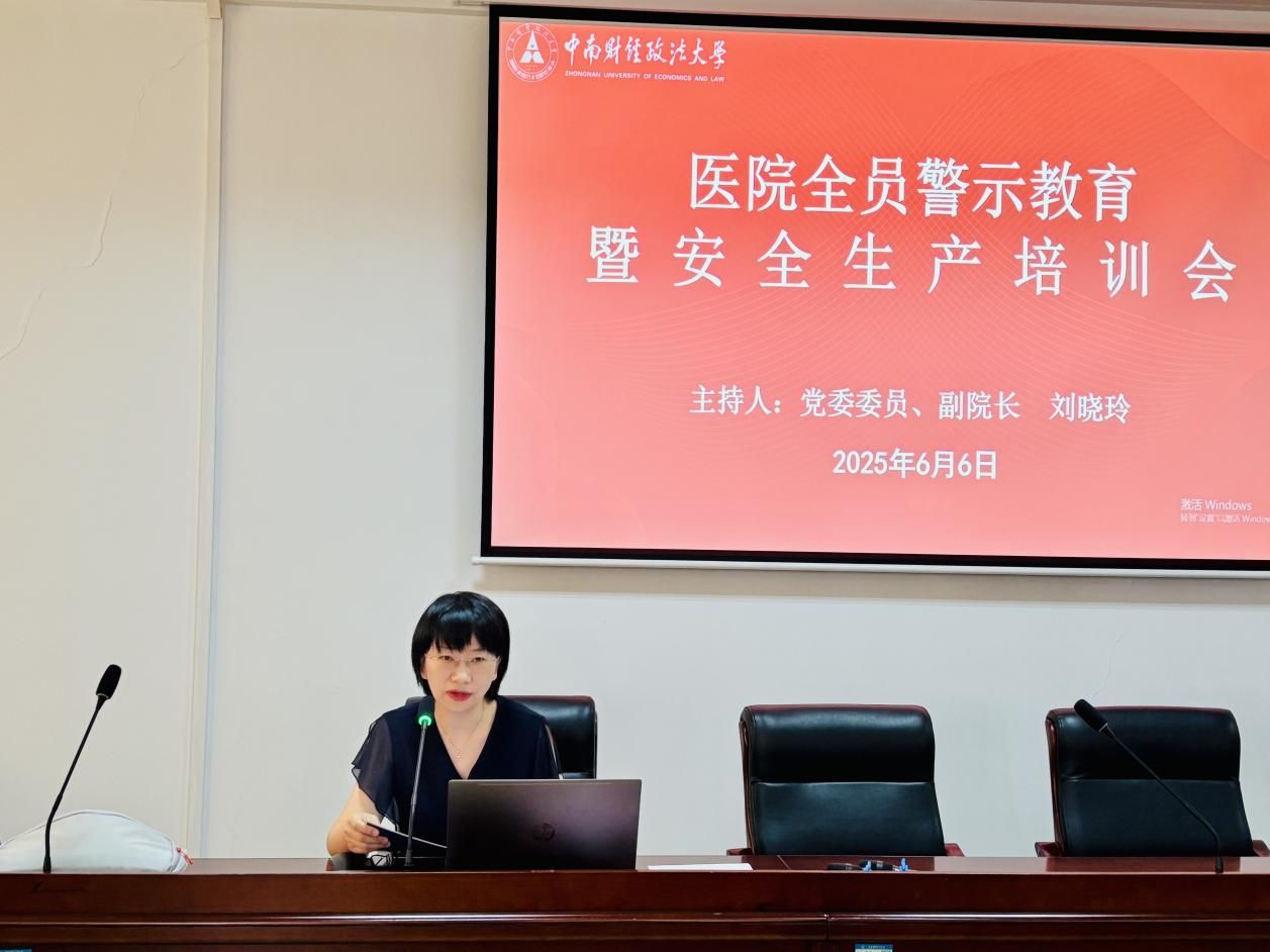 (通讯员 黄涛)2025年6月6日,医院在506会议室召开全员警示教育暨安全生产培训会议,党委委员、副院长刘晓玲主持会议,全院职工参会。