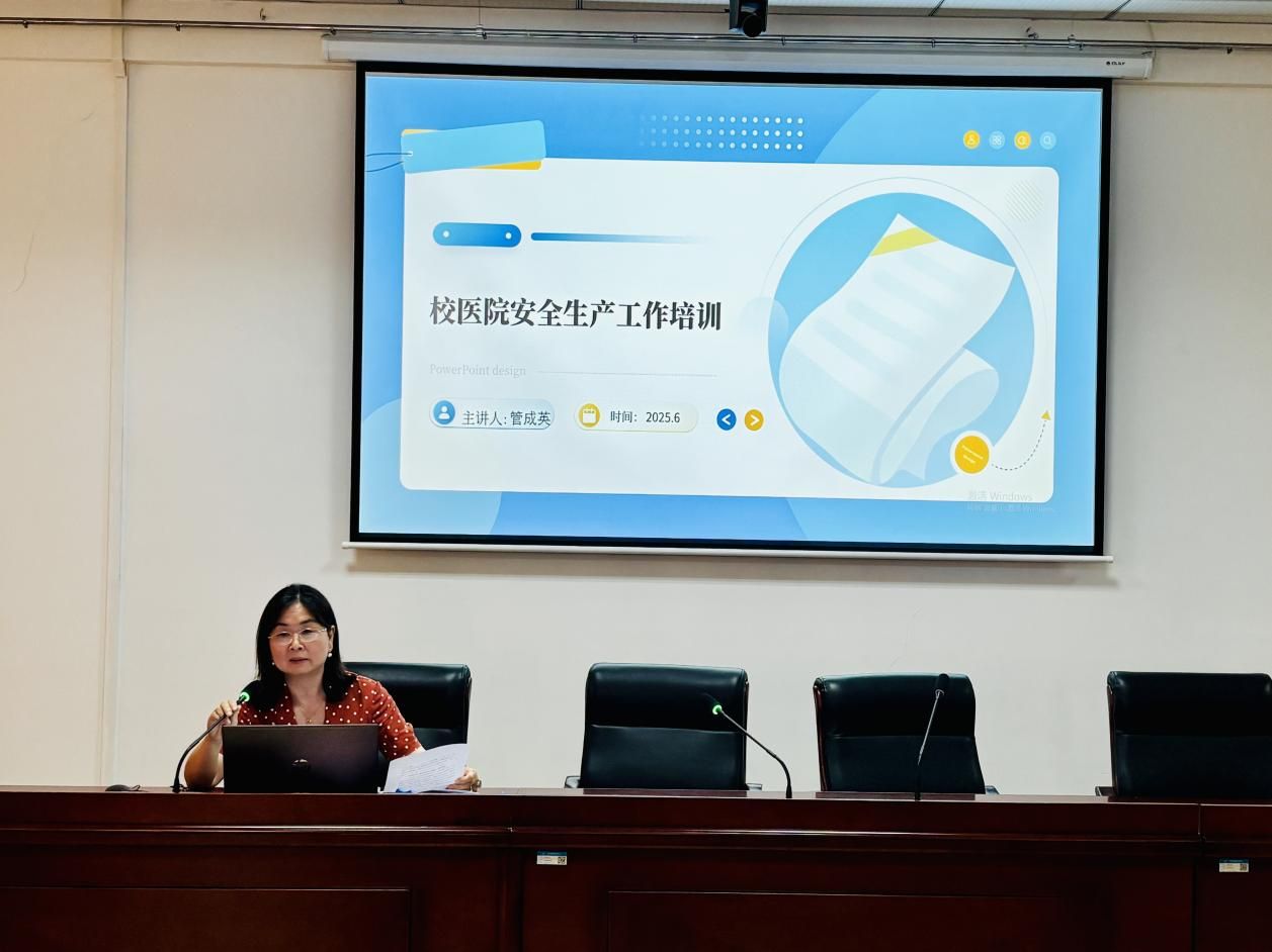 副主任护师管成英结合医院实际,从医疗操作规范、消防应急处置等维度开展安全生产培训,系统筑牢安全管理防线。