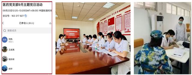 活动中,各支部围绕深化医德医风建设、抓实学习教育总结评估及巩固拓展成果深入研讨,踊跃创新,亮点纷呈。医药党支部通过“线上+线下”模式确保了全员参与和学习教育的不间断,党支部书记钱东彬同志在承担军训保健任务期间,充分利用线上平台,坚持参与线上学习,将学习阵地延伸到军训医疗保障一线,以实际行动生动诠释了共产党员的责任与担当。