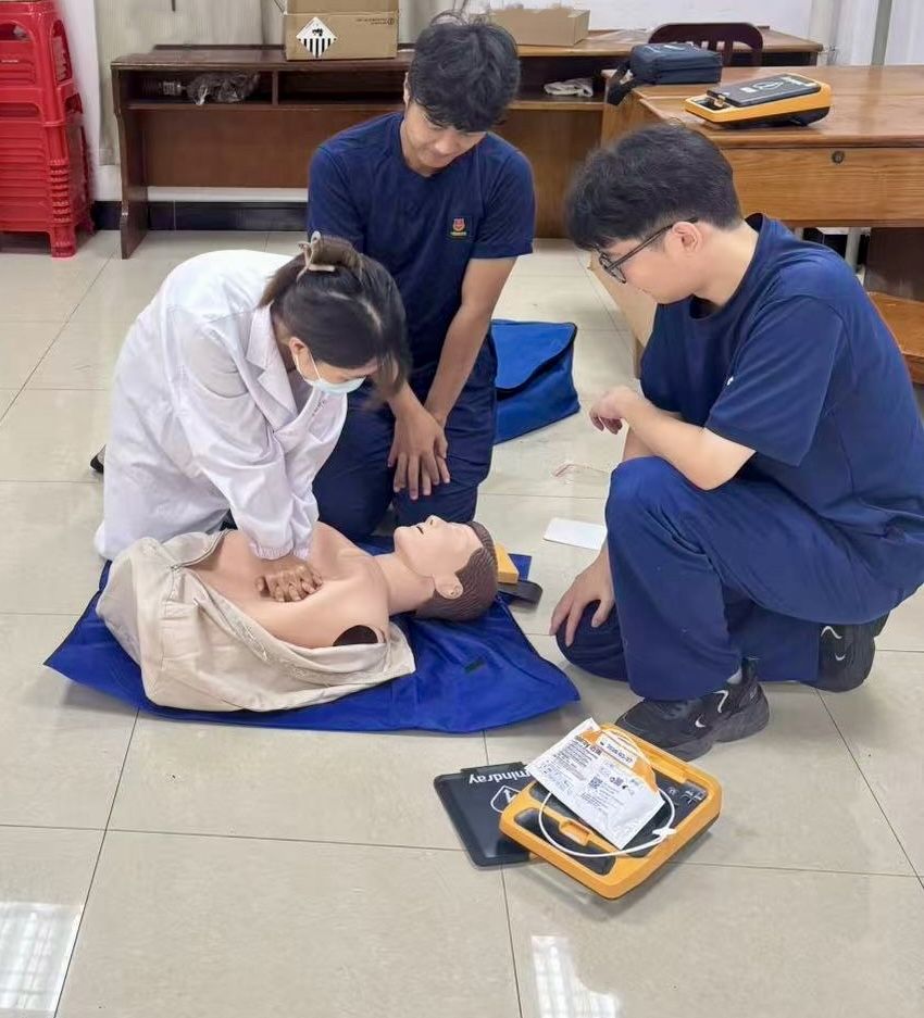 (通讯员 孙丹琪)近日,学校保卫部为备赛洪山区消防技能比武大赛,专程前往医院 “取经”—— 聚焦心肺复苏(CPR)与自动体外除颤仪(AED)操作,寻求专业医疗指导。医院迅速响应需求,开展 “点对点” 现场教学,用专业服务为备战注入 “强心剂”。