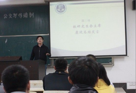 (学生记者 钟芳娜 施卓南)为了提高校研究生会新一届成员日常公文写作工作效率和规范化程度,进一步突显我校“应用型、融通性、开放式”的人才培养特色,校研究生会于10月31日晚7时在文添105教室举办了“中南英才”培训体系之公文写作培训。本次培训主讲人为校团委学生副书记胡鑫。校第二十九届研究生会全体成员参加了本次培训。