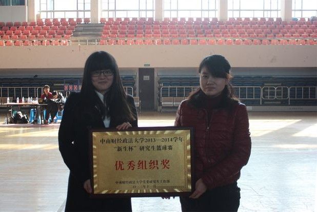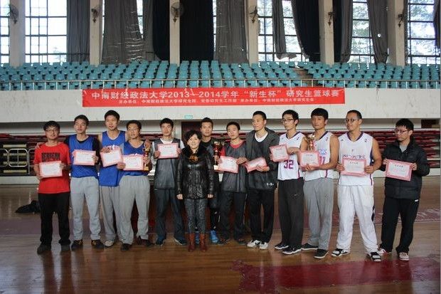 在白玉老师宣布了本次“新生杯”研究生篮球赛的获奖学院及代表队名单后,周佳玲部长和白玉老师分别为获奖学院及代表队颁发了奖杯和证书。颁奖典礼最后,莅临决赛的领导和老师与参赛队员们合影留念。