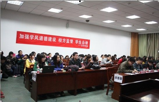 (学生记者 金凤 杞如福)2014年3月14日晚,法学院研究生首届“原法杯”辩论赛成功举行。为贯彻学校倡导的“加强科学道德与学风建设”系列活动,法学院研究生会特此举办了相关主题辩论赛。活动以“加强学风道德建设重在校方监管还是重在学生自律”为辩题,展开了激烈争辩。此次活动邀请了校演讲与辩论协会历届会长以及辩手部部长担任评委,全院研究生积极参加并认真学习活动精神。