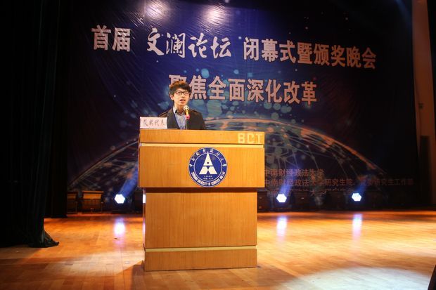 4月26日晚上7时,“文澜论坛”闭幕式暨颁奖晚会在我校大学生艺术体育活动中心音乐厅举行。副校长陈小君教授,学校各二级单位及职能部门负责人,“文澜论坛”评审委员会专家代表、70位参会代表、各研究生培养单位党委书记、分管研究生教育工作的院长、副院长,研究生院、研工部各副院长、副部长,各学院(中心)研究生工作办公室老师列席闭幕式,校研究生工作部副部长笪宁主持闭幕式。“文澜论坛”评审委员会主任李小平教授就文澜论坛审稿情况进行了总结发言。陈小君副校长、研究生院唐国平常务副院长、党委研究生工作部周佳玲部长为35位获奖代表及优秀组织奖颁奖,特等奖获得者郗希作为获奖代表发言。在我校研究生会主席吴妍诗雨同学发言后,我校副校长陈小君教授为本届文澜论坛致闭幕辞。陈小君副校长认为本次论坛“是一场促进交流,强化学习,催人奋进的学术盛宴,是一场解放思想,继往开来,再创辉煌的思想盛会”。总结和运用好本次论坛的经验,对于今后稳步推进论坛建设具有重要的积极意义。至此,米兰电竞·(中国区)首届“文澜论坛”圆满落幕。