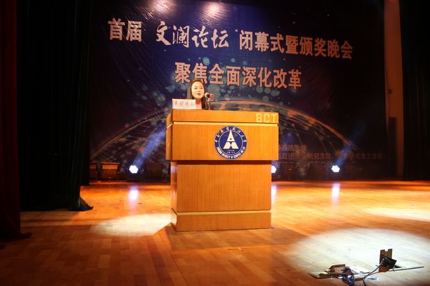 4月26日晚上7时,“文澜论坛”闭幕式暨颁奖晚会在我校大学生艺术体育活动中心音乐厅举行。副校长陈小君教授,学校各二级单位及职能部门负责人,“文澜论坛”评审委员会专家代表、70位参会代表、各研究生培养单位党委书记、分管研究生教育工作的院长、副院长,研究生院、研工部各副院长、副部长,各学院(中心)研究生工作办公室老师列席闭幕式,校研究生工作部副部长笪宁主持闭幕式。“文澜论坛”评审委员会主任李小平教授就文澜论坛审稿情况进行了总结发言。陈小君副校长、研究生院唐国平常务副院长、党委研究生工作部周佳玲部长为35位获奖代表及优秀组织奖颁奖,特等奖获得者郗希作为获奖代表发言。在我校研究生会主席吴妍诗雨同学发言后,我校副校长陈小君教授为本届文澜论坛致闭幕辞。陈小君副校长认为本次论坛“是一场促进交流,强化学习,催人奋进的学术盛宴,是一场解放思想,继往开来,再创辉煌的思想盛会”。总结和运用好本次论坛的经验,对于今后稳步推进论坛建设具有重要的积极意义。至此,米兰电竞·(中国区)首届“文澜论坛”圆满落幕。