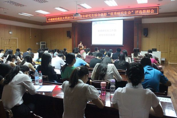 在答辩环节中,14个学院研究生会主席依次上台述职。马克思主义学院强调了“注重思想建设、发挥带头作用;加强干部培训、树立先进模范”的工作理念;哲学院以“同学们需要什么样的研究生会”为切入点,多维度剖析了其探寻的运转高效、目标明确、突破创新的“三位一体”研究生会;经济学院立足于26项学术活动、10项特色文体活动讲述了其在思想、组织和文化方面的努力和成果;财政税务学院以财思高洁、税与争锋、学无止境、院远流长四组词语巧妙地将“财税学院”四个字藏于其中,并以对联“高山仰止、财子佳人谁与争锋风华茂,上下求索、学无止境品牌源远以流长”概括了其思想建设、组织建设、文化建设和品牌建设内容;金融学院则以研会工作、学术工作、社会实践、文体活动、学生生活为主线,深入浅出地汇报了本学年的工作;法学院则围绕“合作取共赢、开门办活动、创新求发展”的整体思路展开述职;刑事司法学院以“展卷研墨、恣意青春”为主题,将研会思想建设、组织建设、文化建设形象生动地喻为狼毫、湖笔、宣纸,并以“笔走龙蛇,挥斥方遒”呼应了“以服务促和谐,以创新求发展”的工作理念;外国语学院从思想、组织、文化三个方面展开了汇报;新闻与文化传播学院推崇思想建设常态化、组织建设规范化、文化建设多元化;工商管理学院以具体实例出发,阐述了其“真真切切办活动,切切实实谋福利”的工作思路;会计学院秉承“以提高研究生综合素质为主旨,以建设浓厚的学术氛围为基调”的工作理念,以思想、作风、机构和规章制度四大板块为服务特色;公共管理学院汇报了其在思想、组织、文体三个方面所举办的活动;统计与数学学院以“π的严谨,N的包容”总结了研会一直以来的工作思路;信息与安全工程学院则围绕“创先争优、继往开来建设思想作风,求真务实、科学创新建设组织机构,乐观向上、永不言弃建设文化涵养;突出优势、扎实创新建设品牌效应”的思路展开述职。