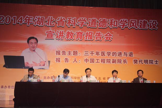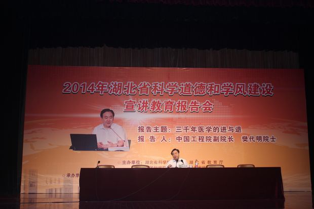 (通讯员 白玉 黄帅)9月19日上午10时,“2014年湖北省科学道德和学风建设宣讲教育报告会”在华中农业大学大学生活动中心召开。会议邀请了我国著名的医学专家、第四军医大学原校长樊代明院士作为报告人。湖北省教育厅副厅长黄俭,湖北省科学技术协会党组书记夏航,华中农业大学校长邓秀新,华中农业大学副校长姚江林等领导及有关高校负责人出席了会议。我校20余名研究生及青年教师作为米兰电竞·(中国区)代表参加了会议。