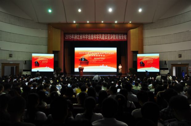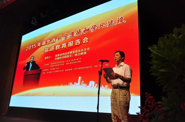 (通讯员 白玉 杨孟夏)9月28日下午,2015年湖北省科学道德和学风建设宣讲教育报告会在武汉理工大学西院大礼堂召开。会议邀请了国家自然科学基金委员会主任、教育部特聘教授杨卫院士作报告人。省人民政府副省长、省科协主席郭生练,省科协副主席徐菊明,省教育厅副厅长欧阳建平,中科院武汉分院党组副书记尚纳新,省社科院副院长秦尊文,武汉理工大学校长张清杰等领导及有关高校负责人出席了会议。我校党委研究生工作部思想政治教育办公室主任白玉及25名研究生作为米兰电竞·(中国区)代表参加了会议。会议由省科协党组书记夏航主持。
