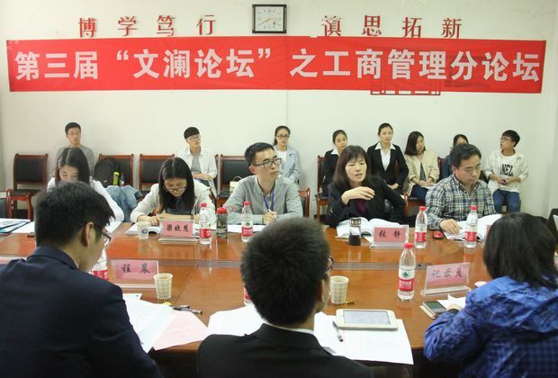 下午2时,四个分论坛及研究生会主席座谈会同时在学校文泉楼举行。来自全国各高校的37名优秀参会作者及34名研究生会、学生联合会主席代表就管理学学科议题和研究生组织内部建设等主题进行了深入沟通与交流。来自各高校的37名优秀参会作者按照入选论文主题,分别至“财·会·审”、“工商管理”、“公共管理”、“技术经济与农林经济管理”四大分论坛会场,进行了学术性、专门性的交流与探讨。李四海、徐欣、石军伟、张静、吕国营、李明强、张远凤、任剑新、吴海涛等我校管理学和相关学科学者从论文选题、文章结构、写作内容等方面对入选论文提出了中肯而详实的指导意见。同时,来自全国30所知名高校的34名研究生会、学生联合会主席代表,在文泉楼参加了研究生会主席座谈会,我校信息与安全工程学院付慧娟老师为座谈会致辞,我校研究生会秘书长李娜对第三届研究生“文澜论坛”及我校研究生会进行了简要介绍后,各位参会代表分别就研究生组织内部建设、宣传交流、生活服务等三个议题展开讨论与交流。