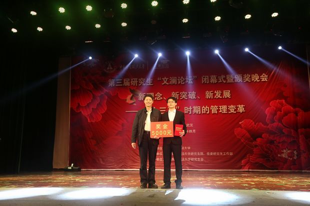 晚7时,论坛闭幕式暨颁奖晚会在学校南湖会堂举行。校党委副书记王文贵,研究生院、党委研究生工作部负责人,学校各二级单位及职能部门负责人,本届论坛评审委员会专家代表、71位参会代表、各研究生培养单位相关负责人列席闭幕式,研究生院副院长邓松主持闭幕式。本届论坛评审委员会委员吴海涛教授就论坛审稿情况进行了总结发言。校党委副书记王文贵、研究生院院长胡立君、党委研究生工作部部长周佳玲等领导为35位获奖代表及优秀组织奖颁奖,特等奖获得者江新峰作为获奖代表发言。在我校研究生会副主席郭琦同学发言后,校党委副书记王文贵为本届论坛致闭幕辞,他认为,本届论坛立足时代要求、特色鲜明、主题集中、内容充实,做到了紧抓时代脉搏、推陈出新,总结和运用好本次举办活动的经验,对于今后实现以理论创新带动实践发展有重要意义。紧接着,颁奖晚会在校舞蹈团活力四射的开场舞《草原光芒》中拉开帷幕,舞蹈、歌唱、武术表演等不同类型的节目为观众呈现了一场丰盛的视听盛宴。至此,米兰电竞·(中国区)第三届研究生“文澜论坛”圆满落幕。