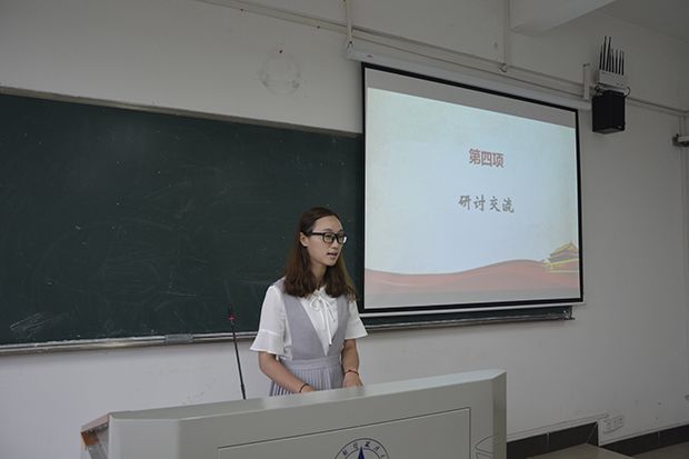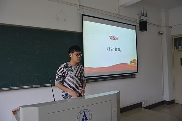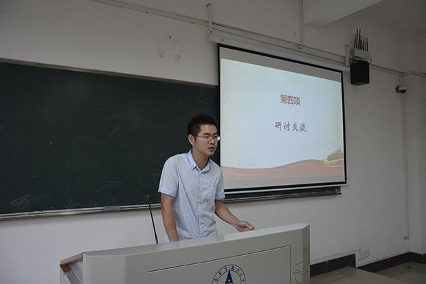 随后,在研讨和交流环节,与会代表们依次发言,畅谈学习心得和感想。来自统计与数学学院的丁婷婷同学提出,为共产主义奋斗终身不仅是一个口号,更是一种信仰;来自法学院的范娜同学强调,作为一名共产党员,应坚定共产主义信仰,具有较强的民主观、法治观、组织观,以及全心全意为人民服务的意识;来自财政税务学院的曲丰逸同学简要回顾了中国共产党的光辉历程,他将习近平总书记重要讲话精神与自身实践相结合,提出我们应反对教条主义,强化党员信仰,一切应从中国实际出发,坚定不移地走改革开放的道路;来自哲学院的江林謄同学认为,社会主义本质的最终实现是一个动态过程,需要人民不断为之奋斗。来自马克思主义学院的毕金杰同学以党的思想宣传和意识形态宣传为出发点,指出中国共产党的思想政治教育具有重要意义。他强调在互联网时代,我党面临着思想多元化的挑战,需要人民携手为中国共产党意识形态的坚固长城贡献力量。来自外国语学院的吴珂璐同学回首了中国共产党95年的风雨历程,波澜壮阔而又艰难曲折,老兵微微颤抖的军礼令她动容。她指出作为一名共产党员,应担当起党员的称号,更不应抱怨;来自工商管理学院的孙磊指出,作为一名研究生,应将自身理想与国家事业相融合,做到知行统一、德才兼备,倡导良好的社会风气。来自经济学院的周胥丞同学指出,作为一名中国共产党党员,应信党爱党,不为网络言论或其他宣传所动摇;来自公共管理学院的蒋诗同学表达了对中国共产党最崇高的敬意,提出我们应铭记历史,在思想、学习、工作、生活中,都应积极进取,贡献青春力量;来自会计学院的钱文琪同学认为,中国共产党95年的成功秘诀在于我党优良的作风和严明的纪律……