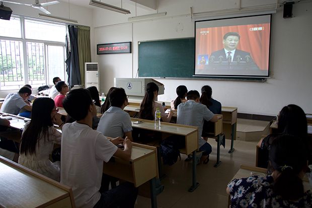 随后,在研讨和交流环节,与会代表们依次发言,畅谈学习心得和感想。来自统计与数学学院的丁婷婷同学提出,为共产主义奋斗终身不仅是一个口号,更是一种信仰;来自法学院的范娜同学强调,作为一名共产党员,应坚定共产主义信仰,具有较强的民主观、法治观、组织观,以及全心全意为人民服务的意识;来自财政税务学院的曲丰逸同学简要回顾了中国共产党的光辉历程,他将习近平总书记重要讲话精神与自身实践相结合,提出我们应反对教条主义,强化党员信仰,一切应从中国实际出发,坚定不移地走改革开放的道路;来自哲学院的江林謄同学认为,社会主义本质的最终实现是一个动态过程,需要人民不断为之奋斗。来自马克思主义学院的毕金杰同学以党的思想宣传和意识形态宣传为出发点,指出中国共产党的思想政治教育具有重要意义。他强调在互联网时代,我党面临着思想多元化的挑战,需要人民携手为中国共产党意识形态的坚固长城贡献力量。来自外国语学院的吴珂璐同学回首了中国共产党95年的风雨历程,波澜壮阔而又艰难曲折,老兵微微颤抖的军礼令她动容。她指出作为一名共产党员,应担当起党员的称号,更不应抱怨;来自工商管理学院的孙磊指出,作为一名研究生,应将自身理想与国家事业相融合,做到知行统一、德才兼备,倡导良好的社会风气。来自经济学院的周胥丞同学指出,作为一名中国共产党党员,应信党爱党,不为网络言论或其他宣传所动摇;来自公共管理学院的蒋诗同学表达了对中国共产党最崇高的敬意,提出我们应铭记历史,在思想、学习、工作、生活中,都应积极进取,贡献青春力量;来自会计学院的钱文琪同学认为,中国共产党95年的成功秘诀在于我党优良的作风和严明的纪律……