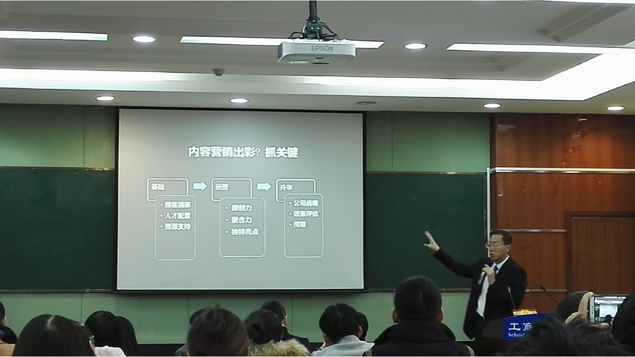 本次活动的主题是“数字.社交.内容——营销新时代的战略与方向”,主要围绕内容营销展开。窦教授首先介绍2016被认为是中国内容营销的元年,许多企业都使用新媒体营销的方式做推广,例如目前有2千万家企业开通微信公众号。企业内容营销的真谛是:灵活、有内涵格调、着眼未来。虽然目前大家都认识到新媒体营销的重要性,但绝大多数企业没能引起大家的兴趣点,淹没在汪洋大海之中。接着窦教授从三个方面阐述了如何做内容营销:打好基础(顾客洞察、人才配置、资源支持);做好运营(原创力、聚合力、独特亮点);升华自我(公司战略、效果评估、传播)。在讲述过程中,他着重介绍了企业在做顾客洞察时常犯的四个错误:只注重顾客表面;未能分辨市场中的细化群体;忽略顾客兴趣随时间或场景的变化;后知后觉的顾客细微反应。同时,他还结合海尔抓住罗晋与唐嫣热点事件营销的案例,强调企业要根据自身品牌个性、品牌社区的特点,做事件营销,要有用户敏感度。在整个活动中,窦教授用风趣幽默的语言,结合鲜活的案例,为大家带来了一场别开生面的学术盛宴。