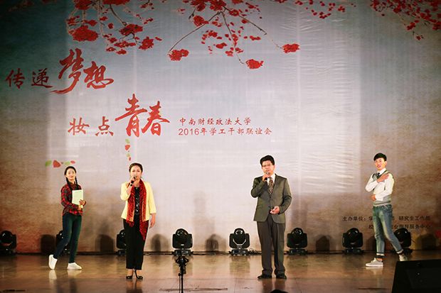(通讯员 黄雯 学生记者 茆小超 韩一鸣)12月16日下午,“传递梦想,妆点青春” 2016年学工干部联谊会在我校艺体中心音乐厅隆重举行。此次联谊会由我校学生工作部、研究生工作部、校团委和就业指导服务中心联合主办,校党委书记张中华、党委副书记王文贵莅临本次联谊会,学生宣传思想教育工作例会成员单位负责人,各学院党委书记、副书记及全体辅导员参加了联谊会。