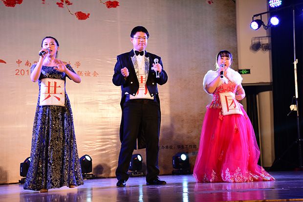 紧接着,主办单位纷纷展现各具特色的节目,给现场观众带来了一场华美的视听盛宴。就业指导服务中心带来的节目《说说咱就业》以诙谐幽默的三句半形式向观众呈现出他们日常工作的点滴,并以一支可爱的儿童舞作结,别具新意,令人印象深刻;学生工作部带来的表演唱《祖国万岁》,歌声嘹亮、旋律激昂,表达了对祖国母亲的热爱之情;研究生工作部通过音乐剧《追梦》重现了老师们从昔日的大学时光到毕业后留校工作的心路历程,并表达了对年轻人坚持梦想的殷切期望;校团委的“共青团”组合带来歌曲联唱《新年快乐》,欢快喜庆的气氛弥漫在整个会场,让大家感受到了浓浓的新年气息。