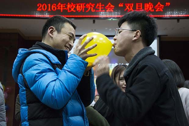随后进入游戏环节,分为三个游戏:吃零食比赛采自愿参与原则,每个部门出一支队伍,共六组,每组五个人。主持人一声令下,每桌成员开始吃零食,哪个桌先吃完就赢得胜利。大家为了部门荣誉纷纷抛开顾虑,约10分钟的吃零食比赛将联谊会推上高潮,这一环节增强了同学之间的团队协作能力。第二个游戏是“谁是最可爱的女生/最阳光的男生”,玩家在回答主持人所提出一连串二择一的问题,通过问题的答案筛选出选出今天在场上最可爱的美女。第三个游戏是吹气球比赛,分别为吹气球(不能用手碰气球)、拿气球(帮助吹气球的人)、运气球两人(两人合力,但不可以用手)、系气球,最快的组获胜,这一游戏再次将获得推向高潮。