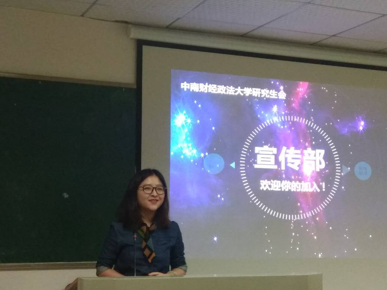 会议伊始,《中南研语》编辑部常务副主编曹宜源详细介绍了《中南研语》这一刊物的基本内容和编辑部的日常情况。她指出,《中南研语》作为面向全体研究生的综合性刊物,分为研工关注、专题策划、人物专访、热点评论、文艺随笔、拾光掠影和运营中心七个板块和部门。这里不仅能提供一个成长环境,更提供一种生活态度,阳光积极的态度。她希望有热情有想法的同学们能踊跃加入《中南研语》编辑部,在提升自身能力的同时,为《中南研语》的发展贡献力量。