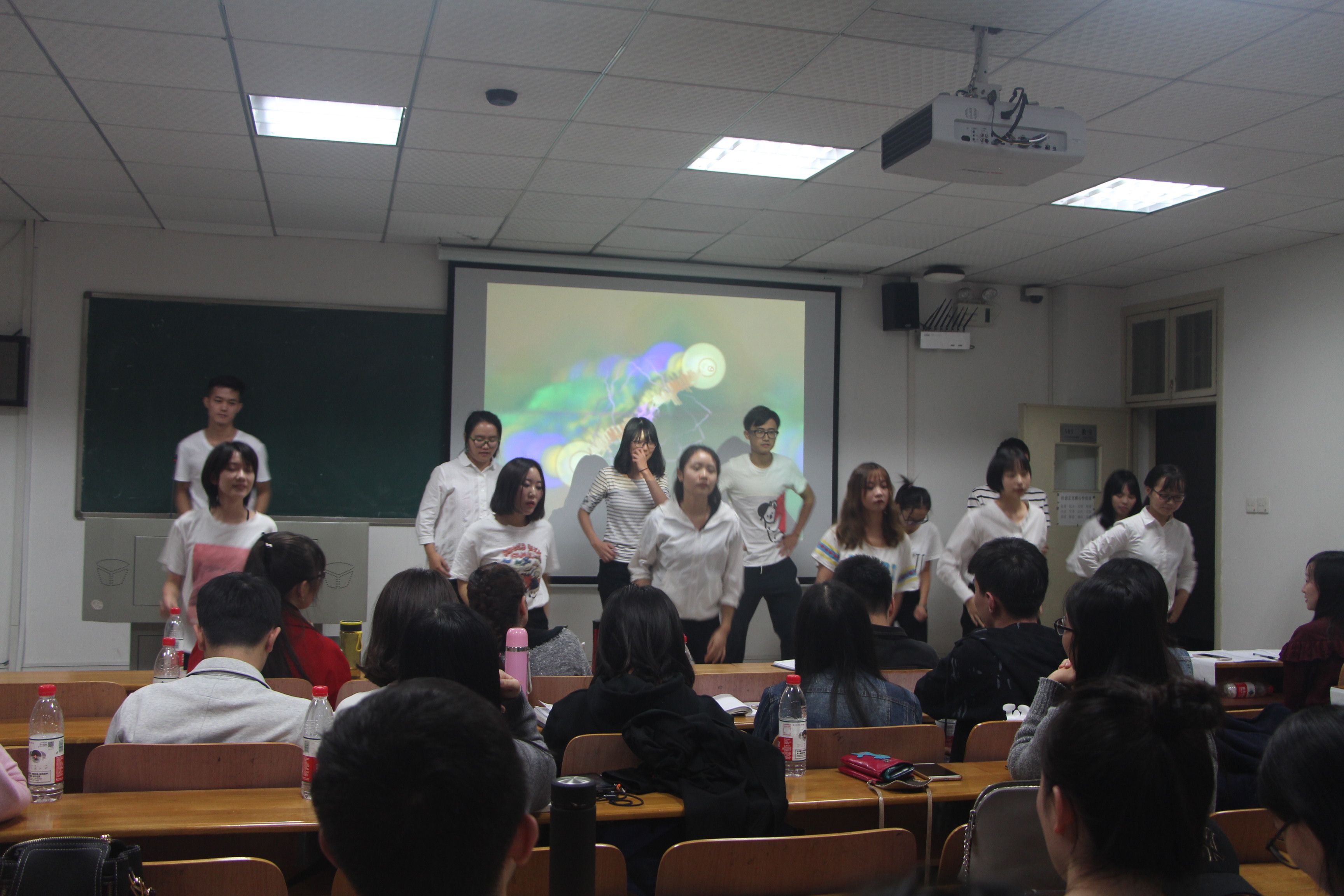 接着,各部门依次开展了实习部长就职演讲和部门风采展示。秘书处的歌曲《追光者》及舞蹈《Panama》,学术部的舞蹈《我们真不错》和文体部方言版的诗朗诵《致橡树》、集体走秀以及舞蹈《Shake it》唤起了同学们的激情,他们简单动人的声音,酷炫的舞姿给同学们留下了深刻的印象,赢得同学们的阵阵欢呼;宣传部的《月半小夜曲》二胡演奏和舞蹈表演惹得全场捧腹大笑;生活服务部的“享·生活”节目、外联部的抖音舞和经典动漫组合合唱,《中南研语》编委会成员的舞蹈《快闪》更是将本次大会推向又一次高潮。各部门的精彩表演让现场气氛十分活跃,会场内一片欢声笑语。