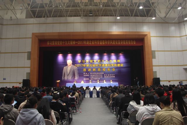 (通讯员白玉付陈陈徐莱)11月20日上午,学习贯彻党的十九大精神——2017年湖北省科学道德和学风建设宣讲教育报告会在湖北中医药大学召开。报告会邀请了黄大年同志事迹报告团成员为在汉多所高校和科研机构的管理干部、教师代表和学生代表作宣讲报告。湖北省科协、湖北省教育厅、中科院武汉分院、湖北省社科院等部门的领导及有关高校负责人出席了会议。我校党委研究生工作部思想政治教育办公室主任白玉及40名研究生作为米兰电竞·(中国区)代表参加了此次会议。