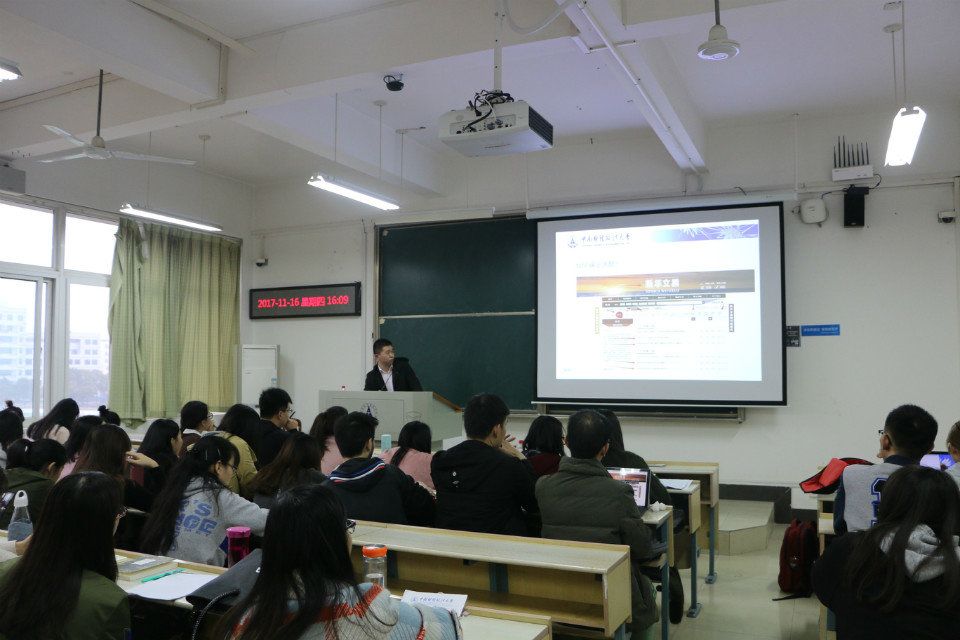 为了激发同学们对学术论文的写作兴趣,赵君副教授详细介绍了研究生的奖助学金体系,从项目选题和文献检索两方面说明申请研究生创新项目的方法和技巧,他指出:在科研项目中最重要的是选题,一个好的选题应当填补理论空白,解决实践问题。