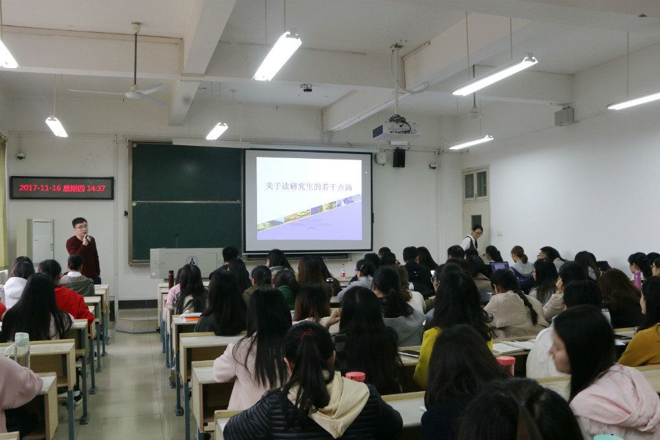 随后,2015级硕士研究生胡浩钰向同学们分享了关于学术论文写作的基本规范和注意事项。他强调,对学术的敬畏之心是做学术研究的关键,鼓励同学们多做研究。接着,他从文献检索和阅读、学术论文的具体写作、参会投稿心得体会、奖学金与研创项目申报等几个方面结合自己的研究经历分享了一些学术经验。在最后的交流环节中,同学们踊跃提问,讲座在轻松融洽的氛围中结束。