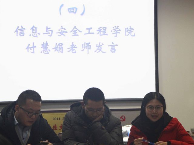 会议伊始,四位研究生辅导员代表依次发言,向大家分享自己的工作经验和体会。金融学院梁艳艳老师对自己在2017年度所做的工作进行了总结,并提出了自己在日常工作中所遇到的困难,指出研究生与本科生相比独立性强,“不服管、不好管”问题日益突出,辅导员工作任务繁重并且面临较大挑战。法学院曹丽萍老师在发言中提出“一体两翼三基础”的工作思路,认为辅导员在日常管理中要以研究生党建工作为龙头,以研究生党支部和研究生会为依托,以提高研究生学术水平和就业率为基础,真正做到对学生思想、学习和生活方面的关心和帮助。法律硕士教育中心刘翔老师则结合自身经历,指出一名优秀的研究生辅导员应与学生保持亦师亦友的关系,要与学生深入交流,真正做到为学生着想,与学生共同发展进步。信息与安全工程学院付慧娟老师认为研究生思政教育与管理工作应该与时俱进,她结合学院的学科特点,对学院开展的相关网络思想教育工作进行了介绍,颇具特色和新意,让大家深受启发。