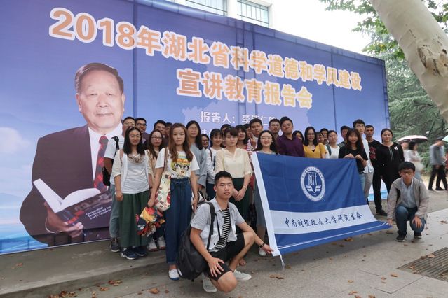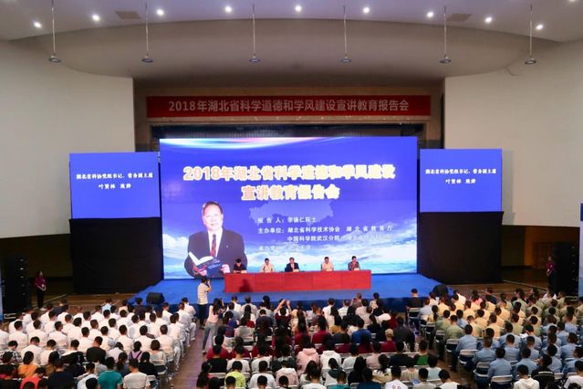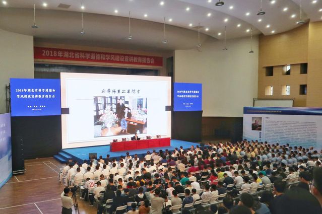 (通讯员 张舒婷 章宗惠 魏加庆)10月8日下午,2018年湖北省科学道德和学风建设宣讲教育报告会在武汉大学召开。报告邀请了中国科学院、中国工程院院士李德仁为在汉多所高校和科研机构的管理干部、教师代表和学生代表作宣讲报告。湖北省科学技术协会、湖北省教育厅、中国科学院武汉分院、湖北省社会科学院等部门的领导及有关高校负责人出席了会议。我校党委研究生工作部副部长吴凡、思想政治教育办公室主任白玉及38名研究生代表我校参加了此次活动。