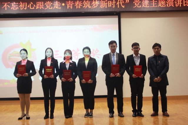 (通讯员白玉张亚蓓卢帆)为进一步深入学习宣传贯彻习近平新时代中国特色社会主义思想和党的十九大精神,丰富研究生党建活动形式和载体,同时展现研究生群体奋发向上的精神风貌,11月22日下午15:00,研究生院、党委研究生工作部在文济楼二楼报告厅举办了“不忘初心跟党走,青春筑梦新时代”党建主题演讲比赛。担任本次比赛的评委有新闻与文化传播学院吴玉兰教授、党委研究生工作部周佳玲部长、党委组织部傅小勇副部长、党委宣传部徐江副部长和校团委梁娜副书记。研究生院胡立君院长出席本次比赛并进行致辞。比赛由党委研究生工作部吴凡副部长主持,各学院(中心)领导老师与研究生代表近两百人到场。