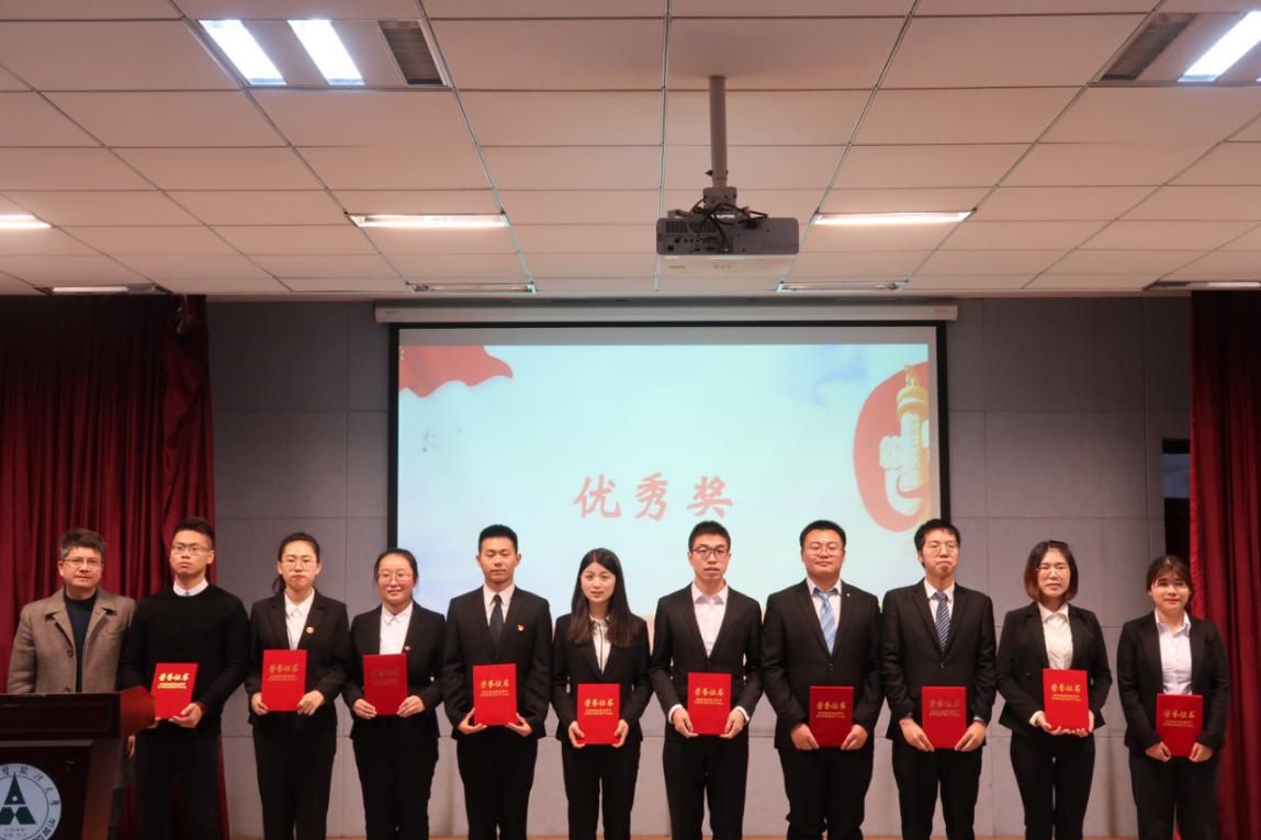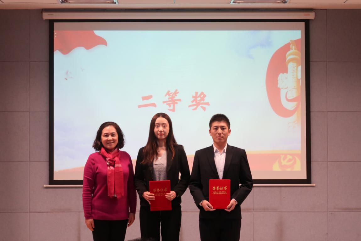 12月13日下午,在研究生院、党委研究生工作部举办的颁奖典礼上,党委宣传部殷修林部长、党委研究生工作部周佳玲部长、党委组织部向前副部长和党委研究生工作部吴凡副部长分别为获奖同学颁奖并合影留念。