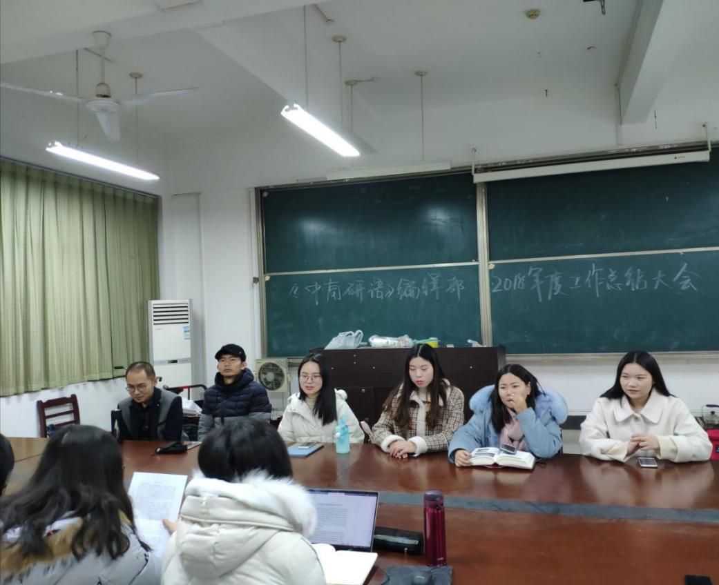 (通讯员 陈丽颖)1月5日下午5点,《中南研语》编辑部2018年度工作总结会在文添楼104教室如期召开。本次会议由常务副主编袁雪晴主持,编辑部全体成员参加会议。