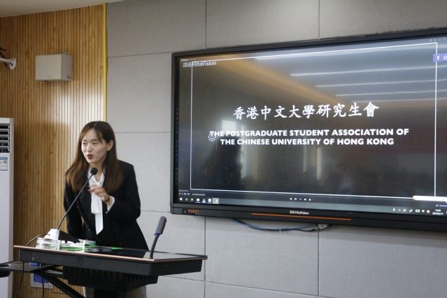 接着,武汉大学研究生会主席李文晖以“新时代研究生会”为主题进行介绍。他提出新时代下,研究生会要有新气象、新作为,为学生谋需求,为学校聚合力,为国家育英才,并详细阐述武汉大学研究生会在“聚集需求、发展需求、防范风险”的原则下展开的一系列的特色活动;香港中文大学研究生会外务副会长孙周跃则从香港中文大学与大陆院校机构设置上的差异性展开论述,对港中大的独立社团和会员制度、港校的特色活动与国际文化交流活动作了详细介绍。