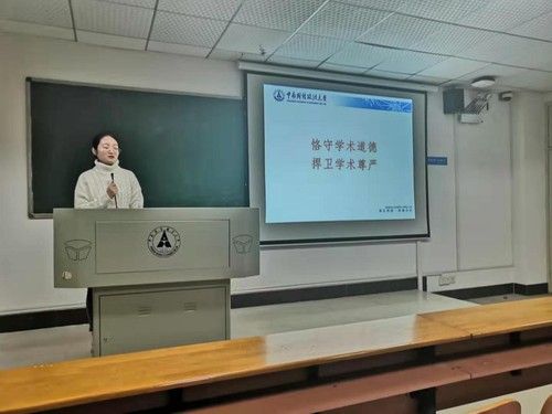 (通讯员:赵元元、胡文峰)2019年11月17日晚7点,由校研究生院、党委研究生工作部和校研究生会主办,工商管理学院研究生会承办的“科学道德和学风建设宣讲教育”活动在文添楼503教室成功举办。本次活动邀请我院国际贸易学博士生龚联梅为2019级全体研究生做专题讲座,龚联梅博士以“恪守学术道德·捍卫学术尊严”为题展开内容丰富的演讲,其目的在于教育和引导研究生建立和践行科学精神和科学道德,严格遵守学术规范,共同推动学术科研的健康发展。活动由工商管理学院研究生会学术部部长张鼎主持。