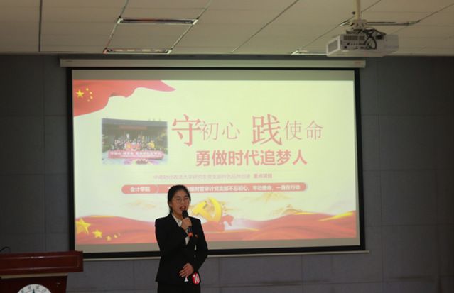 经过前期策划申报、初审立项、组织实施、结项评审等环节,共有20个党支部取得了参加本次成果展评会的资格。在成果展评中,各党支部就本支部特色活动的实施过程、实施成效、主要特色、创新之处、经验与不足等内容进行了展示汇报,充分展现了我校研究生基层党建工作的精神风貌。信息与安全工程学院研究生第一、第二党支部以“峥嵘岁月铭心间,不待扬鞭奋自蹄”为主题将专业知识与党建活动紧密融合,自行开发“智慧党建云” 微信小程序,举行“星熠”技术秀成果展评会,发动支部党员运用自身所学解决现实问题,发挥党员同学在专业学习领域中的模范作用;会计学院学硕2018级财管审计党支部围绕“守初心,践使命”的主题,展示了回顾初心、聆听初心、传递初心、追寻初心、践行初心五位一体的活动实施情况,鼓励研究生党员将个人理想与国家梦想相结合,勇做时代追梦人;哲学院研究生第三党支部将支部项目分为入党流程模拟视频展演和入党积极分子主题教育会两部分,向大家介绍了支部活动的创新特色。各党支部代表共同展现出一场特色各异、精彩纷呈的展评会。
