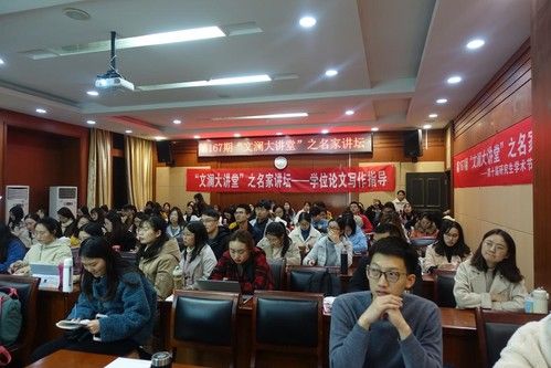 (通讯员 袁媛 邱文杰 常玉羊)2019年11月26日晚六点半,由校研究生院、党委研究生工作部和校研究生会主办,财政税务学院研究生会承办的“第167期文澜大讲堂之名家讲坛——第十届研究生学术节系列讲座”活动在文泉楼北403教室成功举办。本次活动邀请到我院博士生导师胡洪曙教授为全体研究生及博士生做专题讲座,旨在帮助同学们学习论文写作的要点和方法,提升学生的写作素养和论文质量。活动由财政税务学院唐皓老师主持。