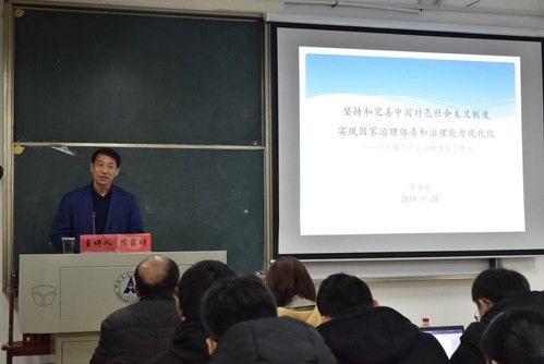 韩美群教授对陈家刚教授的精彩讲学表示感谢并做了总结发言,陈家刚教授的讲话理论功底深厚,及时、全面、准确的解读了十九届四中全会,且具有专业性、权威性、系统性、深刻性的特点,为我们传递了学术研究的精神。