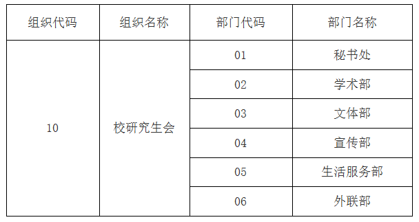 2.校研究生会组织及部门代码(报名表请务必填写相应代码)