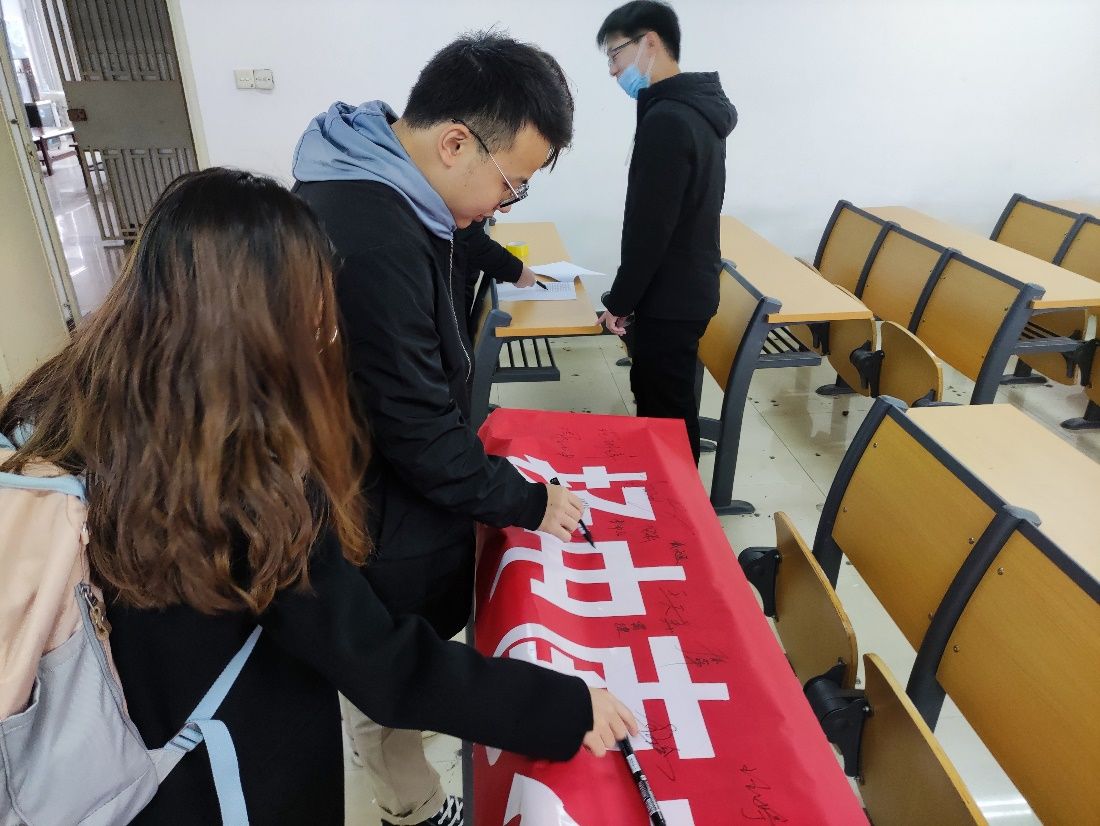 最后主持人向陶云清博士和现场及线上的参会人员们表达了感谢,现场参会人员们积极在“守学风之底线,扬中南之正气”主题横幅上签字,本次“科学道德和学风建设宣讲教育”活动圆满结束。